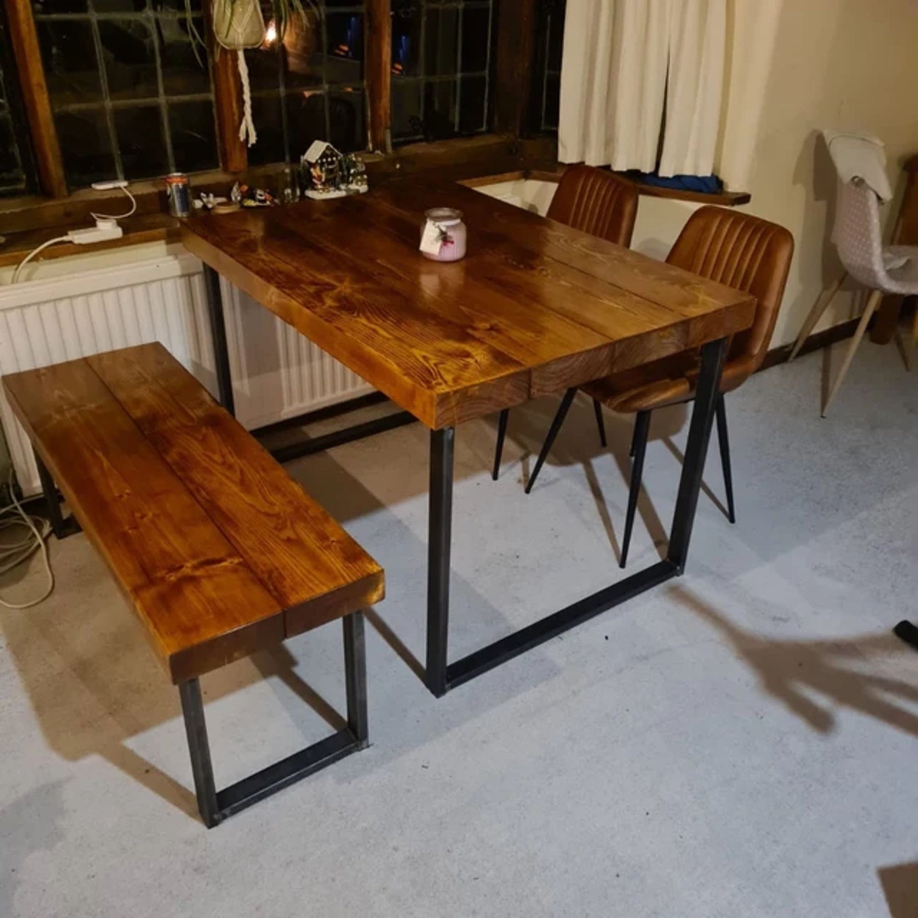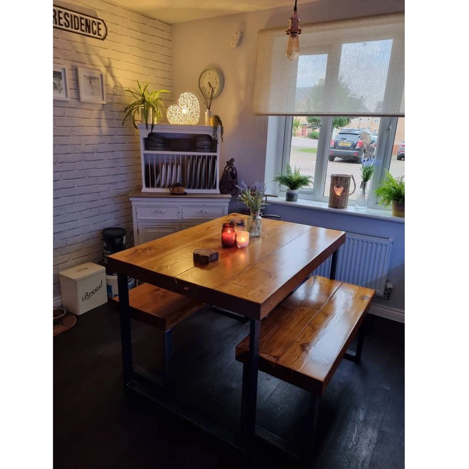 Amazing ! This chunky table is absolutely perfect, I loved it from the day one. We bought 180cm long with 160cm bench - fits exactly to family of 6. We can slide the bench unde the table if not needed. We have asked for a small custom about hight which cost a bit more but well its custom job.
