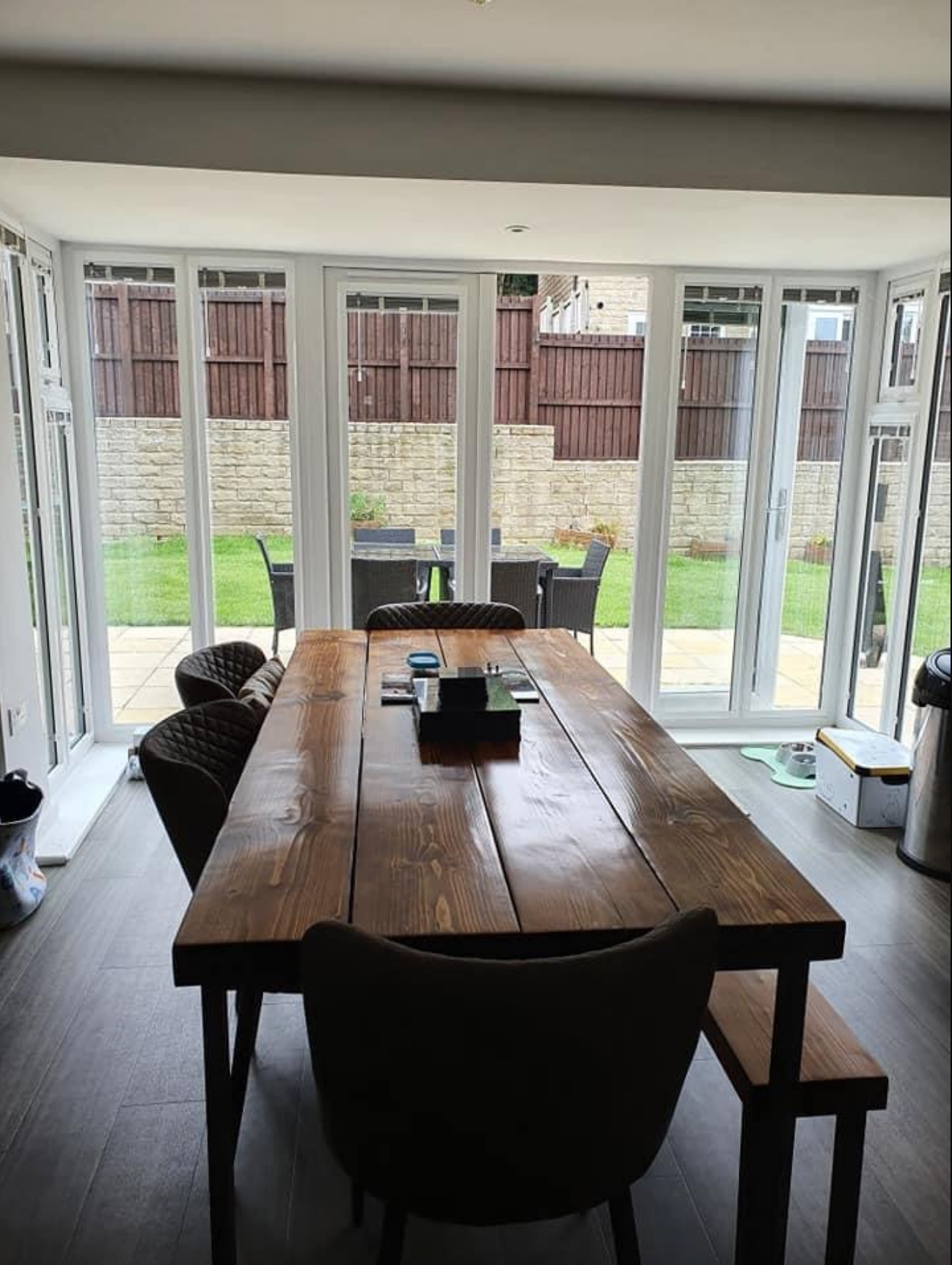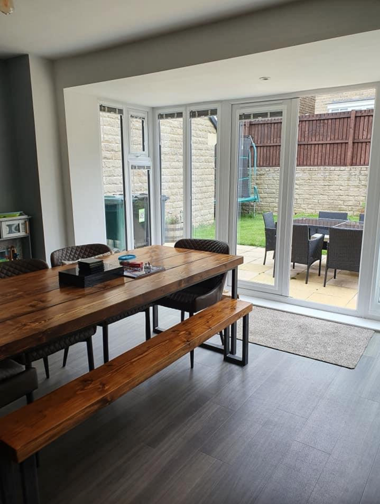 Take a look at our beautiful dining room table and bench. The table top is made from 4 pieces of rustic, reclaimed planks joined to create a beautiful and secure surface. The wood used is 70mm thick superb chunky solid wood.