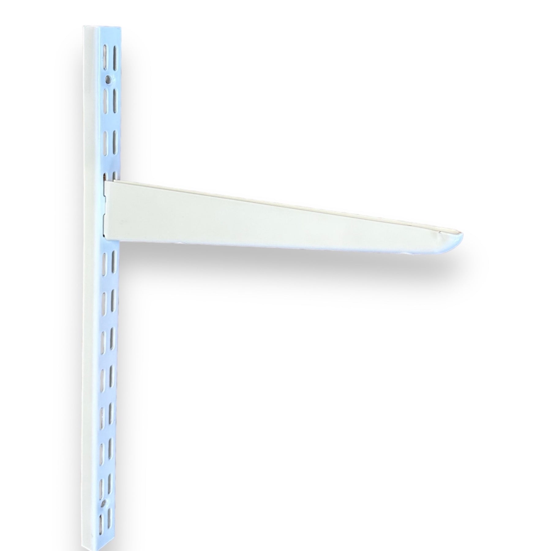 Twin Slot Wall Mounted Shelving Bracket & Upright White Adjustable