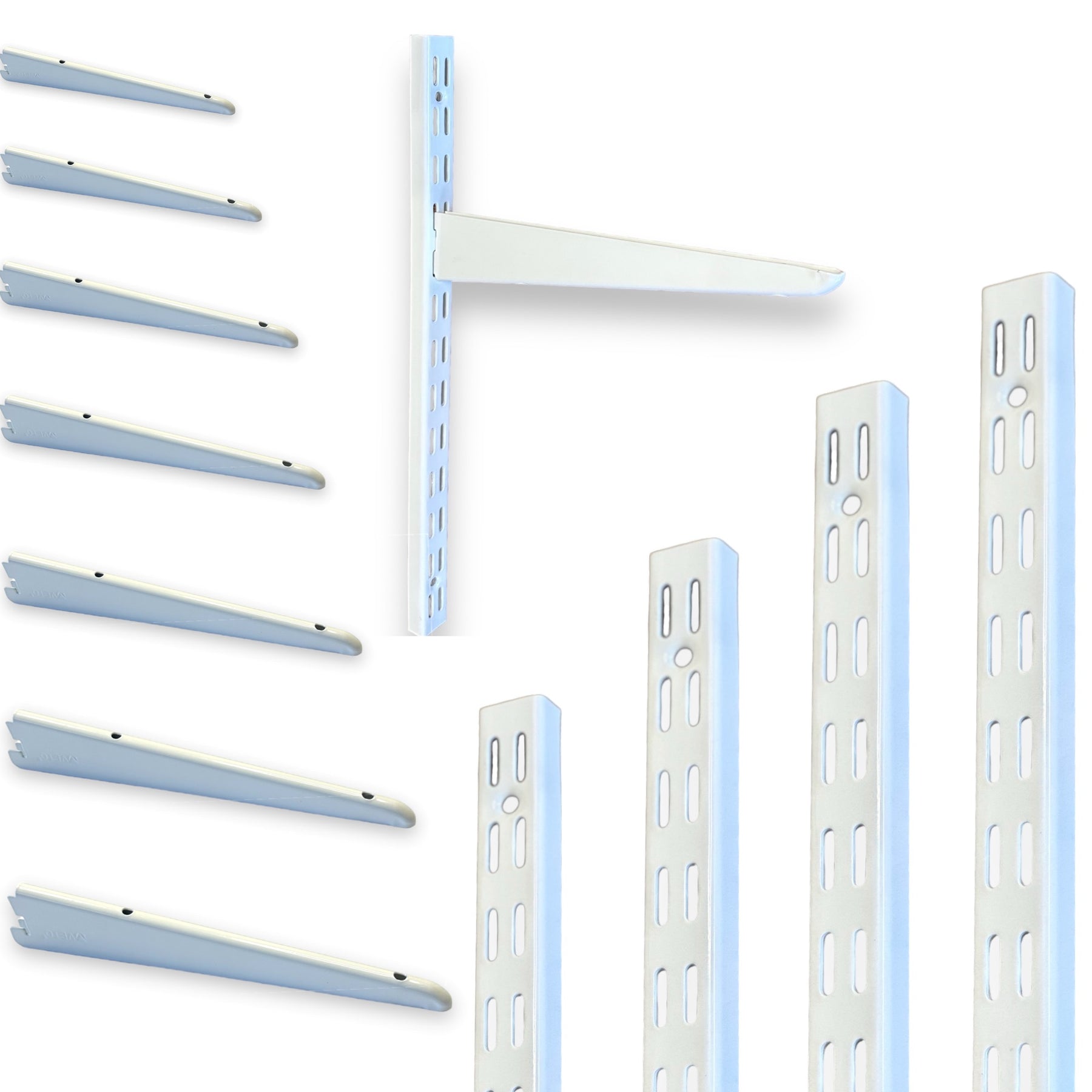 Introducing our Twin Slot Shelving WHITE Uprights & Brackets, your ultimate solution for versatile storage!