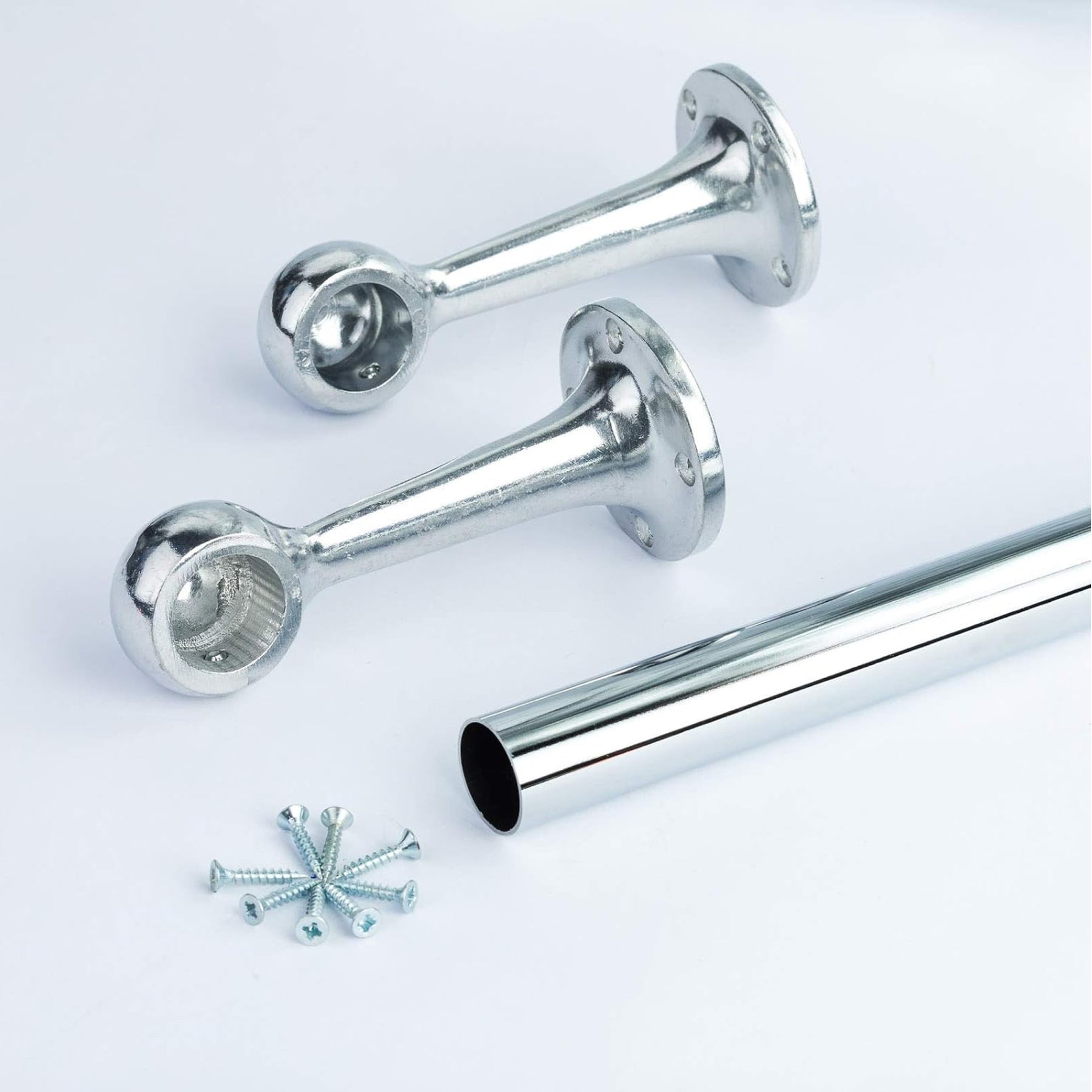 Introducing our Chrome Wardrobe/Shop Fitting Round Hanging Rail Set, designed for versatility and durability