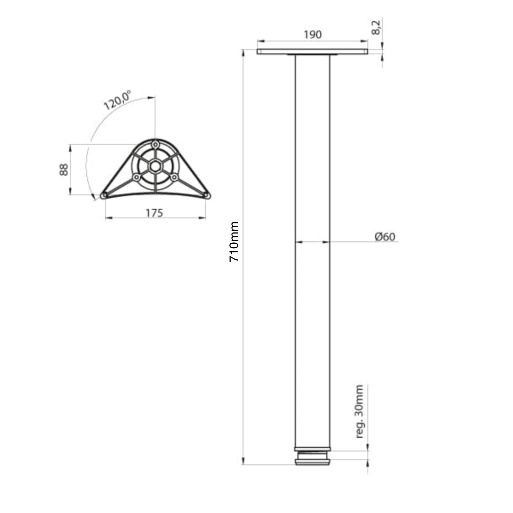 With a standard height of 710mm and built-in adjustable feet (+/- 25mm), these legs allow easy leveling on uneven floors, providing stability and support for a wide range of furniture applications.