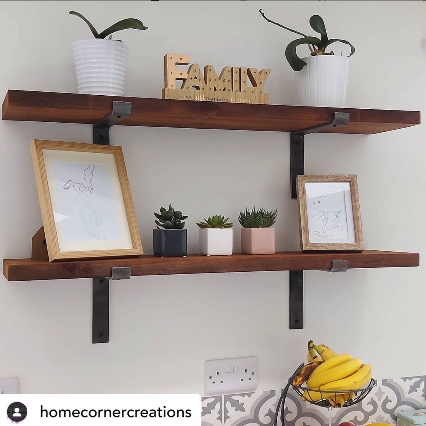 Our metal brackets are handmade by our experienced craftsmen. We provide you with all suitable fixings for solid walls. For the plasterboard walls you will have to source the appropriate fixings. Please keep in mind that our brackets are unpainted/unfinished and will rust with time.